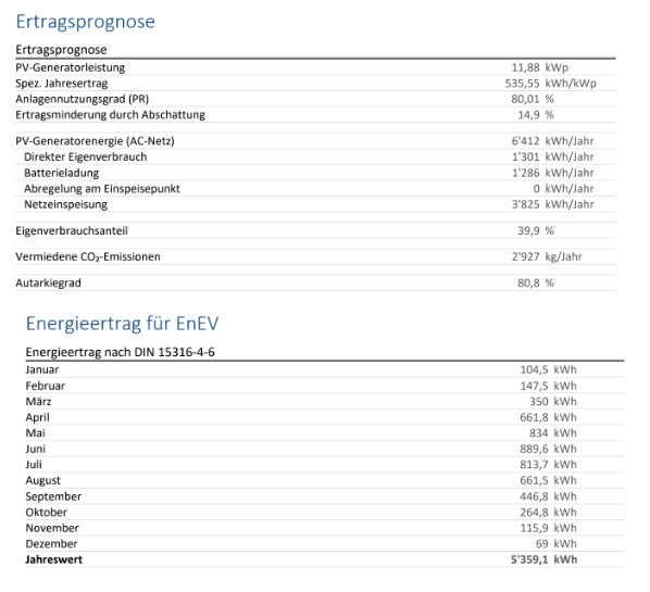 Der Stromverbrauch des Kunden liegt bei 3.000 kWh und der Autarkiegrad liegt bei 80,8%. Die Photovoltaikanlage hilft dem Kunden, 80,8% von den 3.000 kWh zu sparen. Somit bezieht der Kunde 19,2%, also 576 kWh im Jahr!