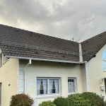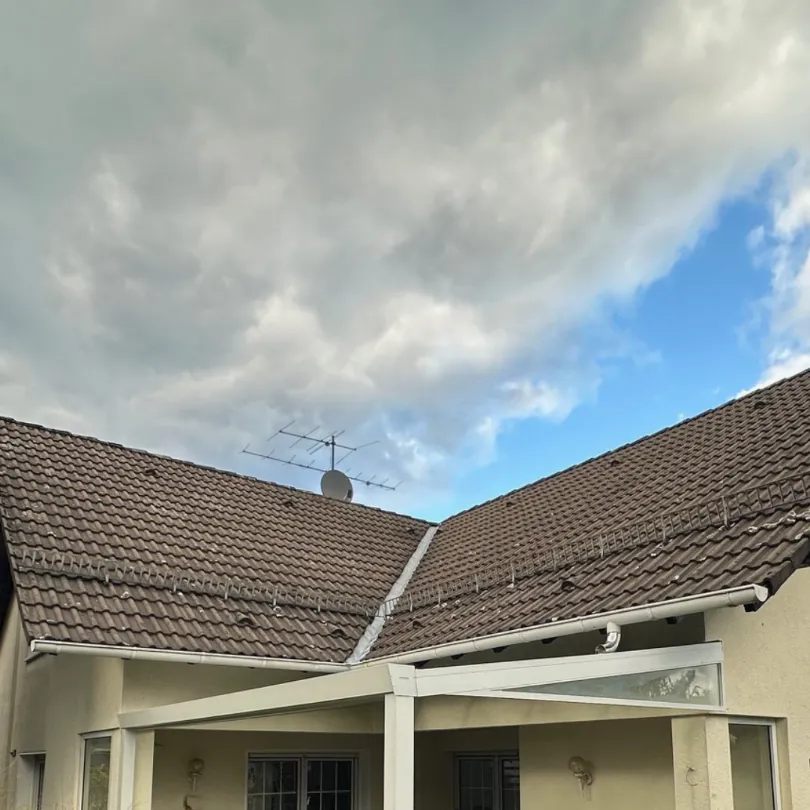Übrigens konnten wir den Sanitärlüftungsziegel gegen einen flachen austauschen, dass wir (anders als bei der Simulation, die sie unten sehen) ein einheitliches Bild auf beiden Seiten haben.