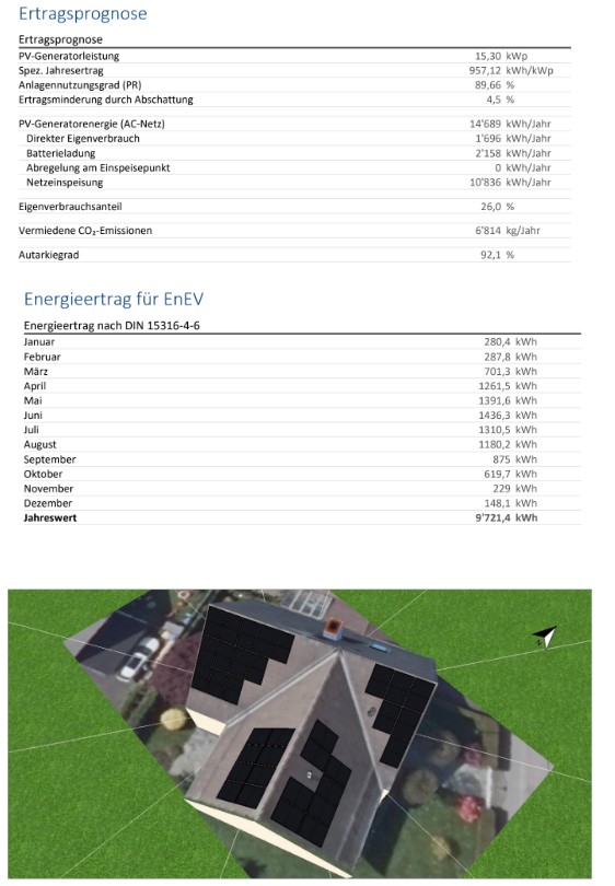 Für das Projekt in Neuenrade wurden 34 Bauer Solar Module a 450 W auf dem Dach des Kunden installiert. Die Anlage mit einer Gesamtleistung von 15,3 kWp ist mit einer Südost- und Südwest-Ausrichtung verteilt, und die berechnete spezifische Jahresleistung liegt bei 957,12 kWh/kWp.