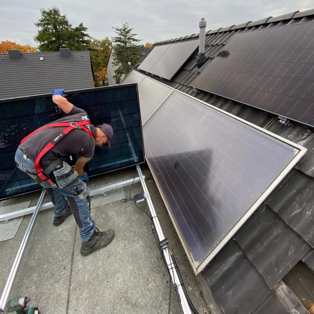 Für das Projekt in Oberhausen wurden 22 JA Solar Module à 450 W auf dem Dach des Kunden installiert. Die Anlage mit einer Gesamtleistung von 9,9 kWp ist auf zwei Dachflächen mit Nord- und Südausrichtung verteilt – eine gute Basis für gleichmäßige Erträge über den Tag hinweg. Die berechnete spezifische Jahresleistung liegt bei 757,76 kWh/kWp.