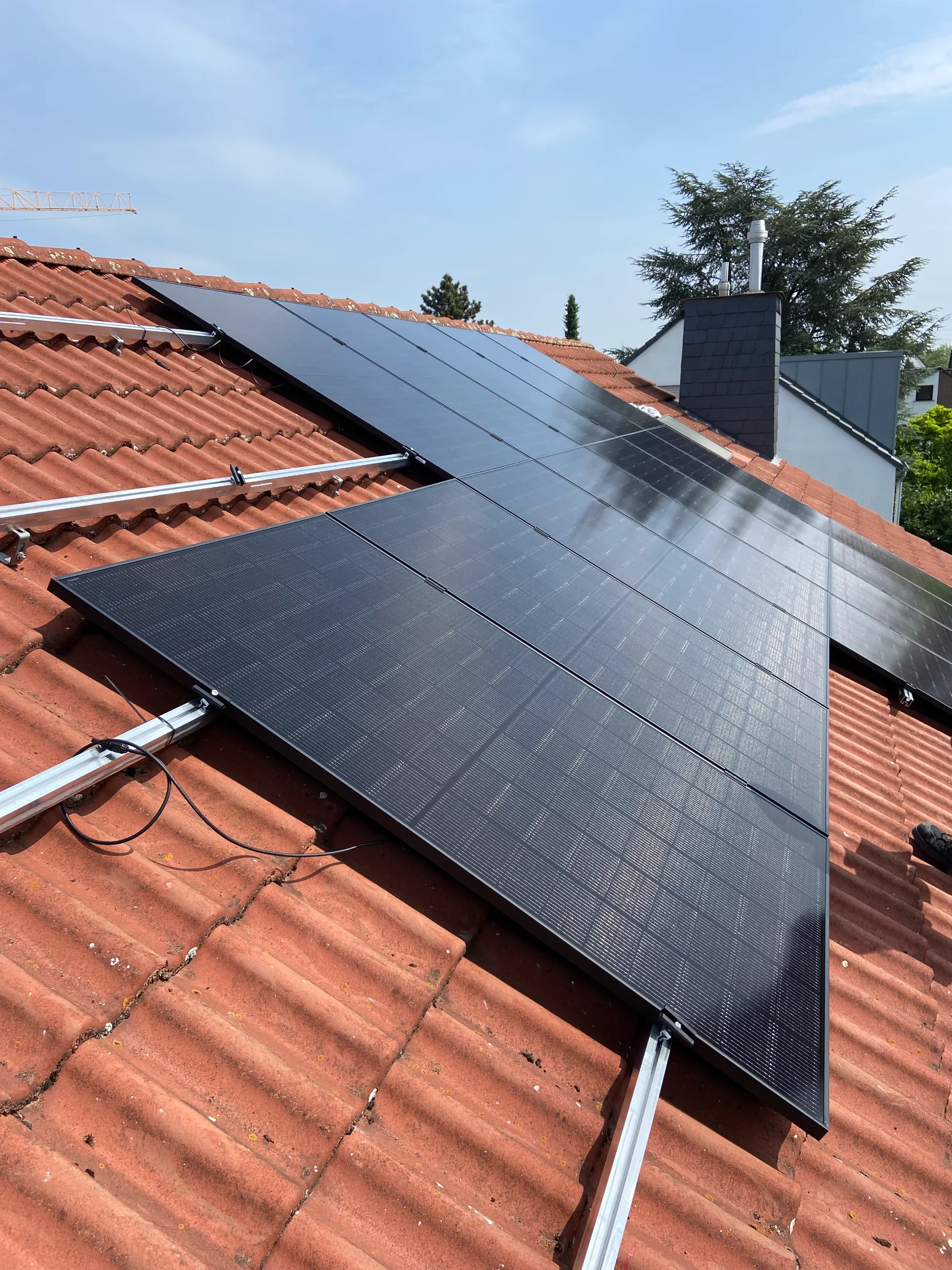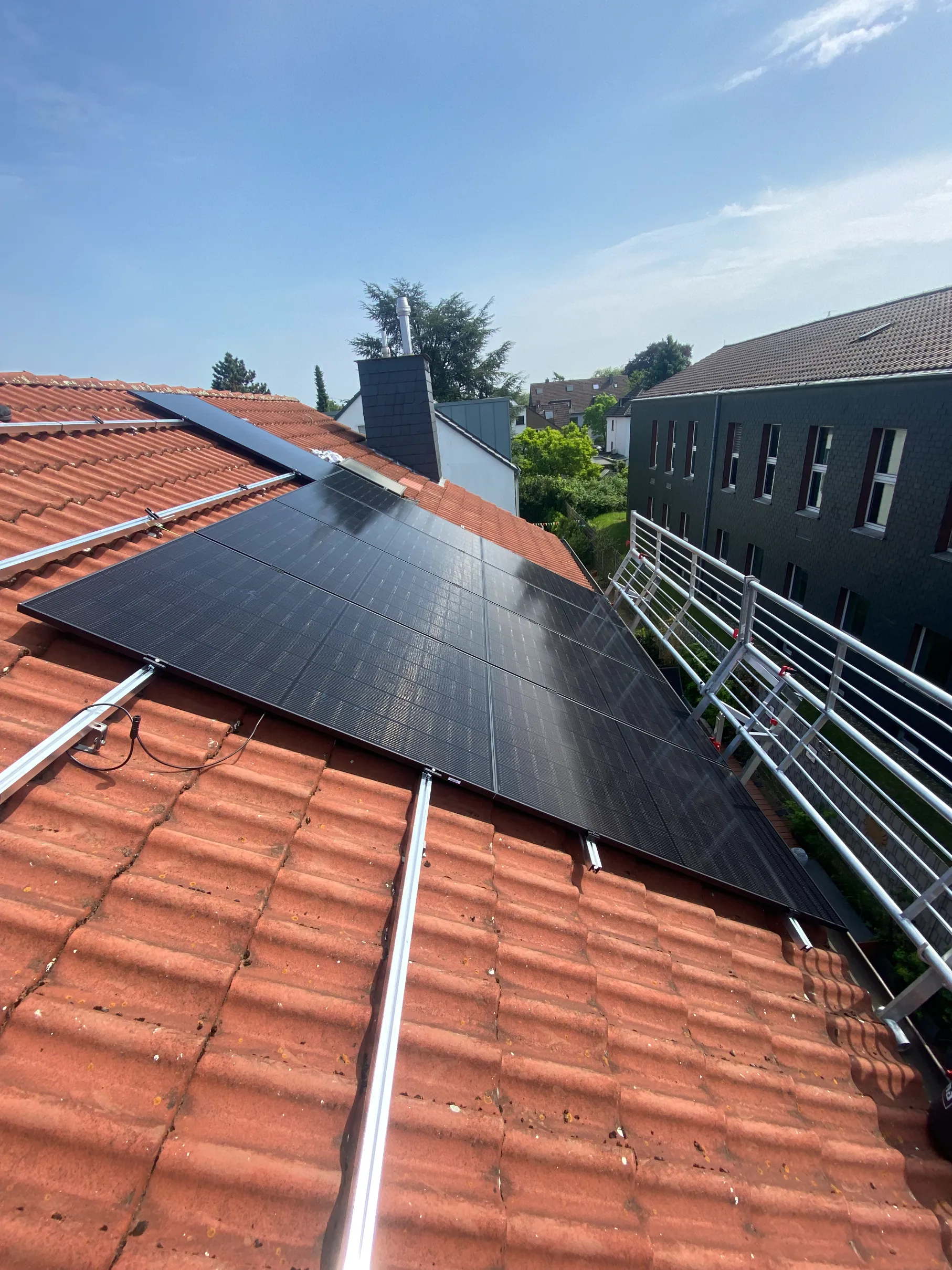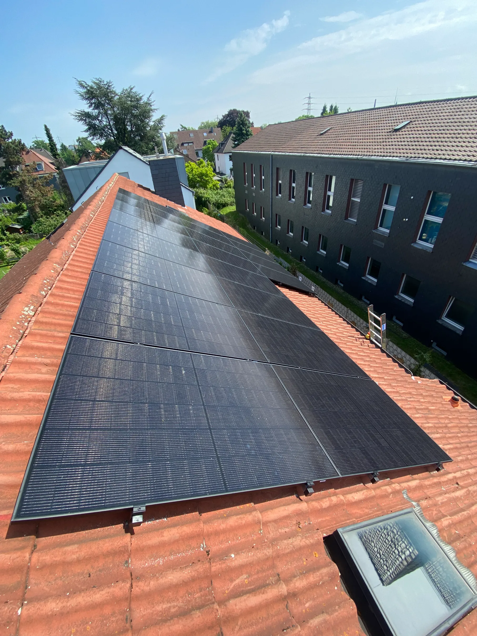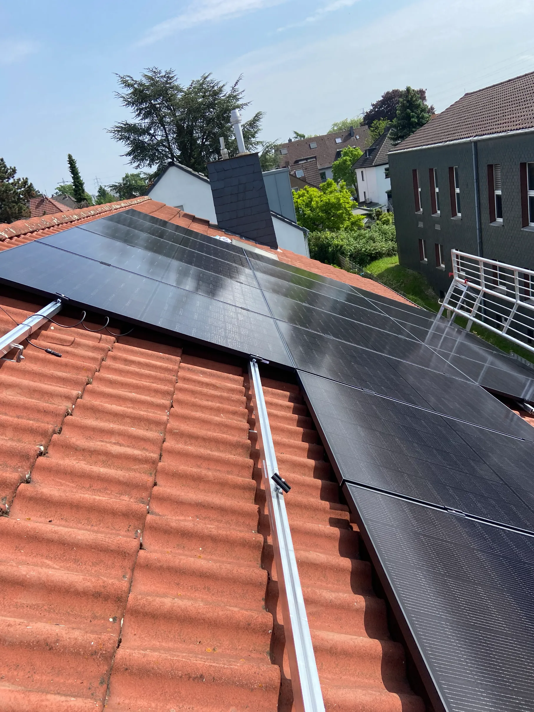 Mülheim an der Ruhr: 20 Module a 445 W – 8,9 kWp. Südseite mit 10kWh Batteriespeicher = Autarkiegard der PV Anlage: 77%.