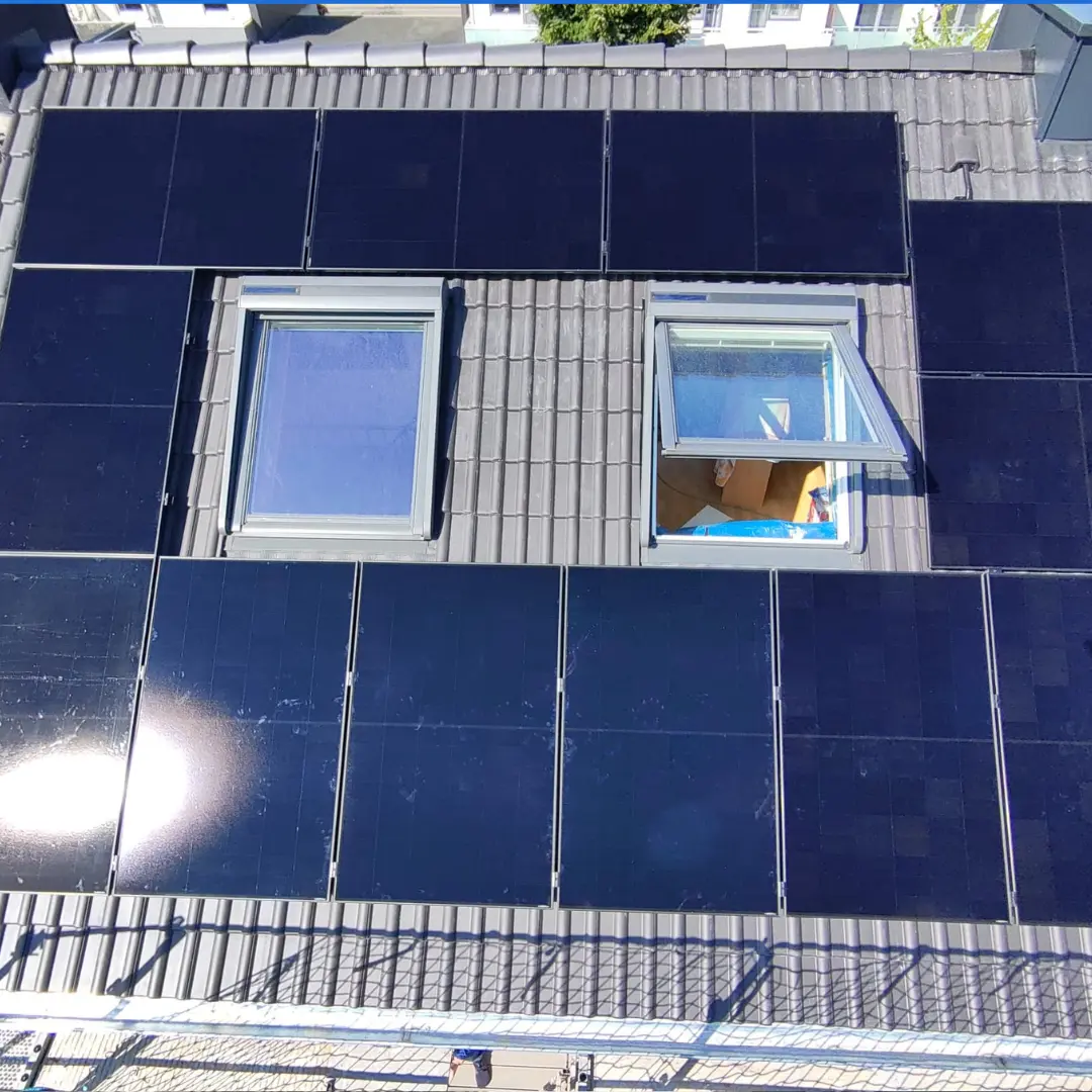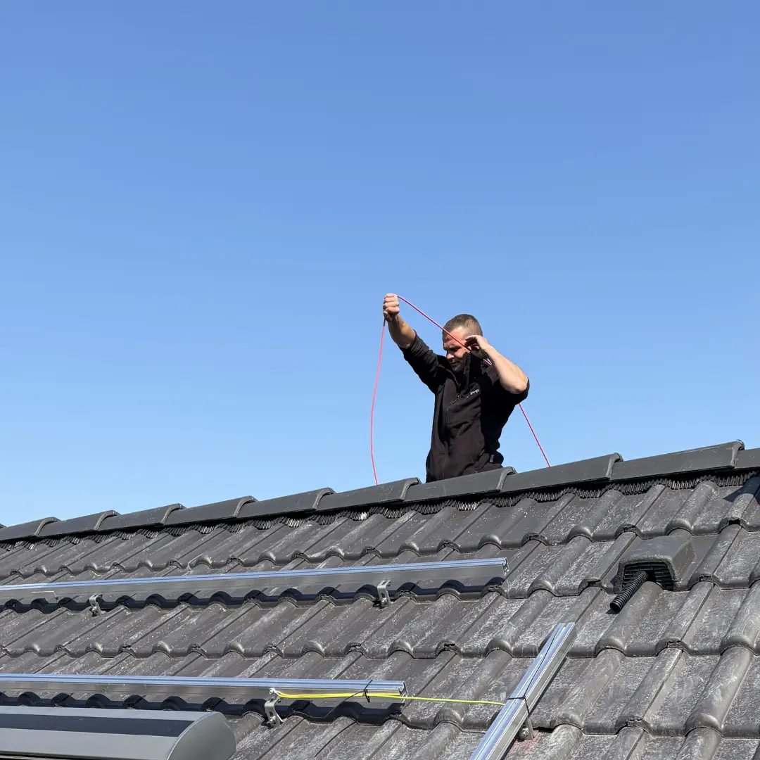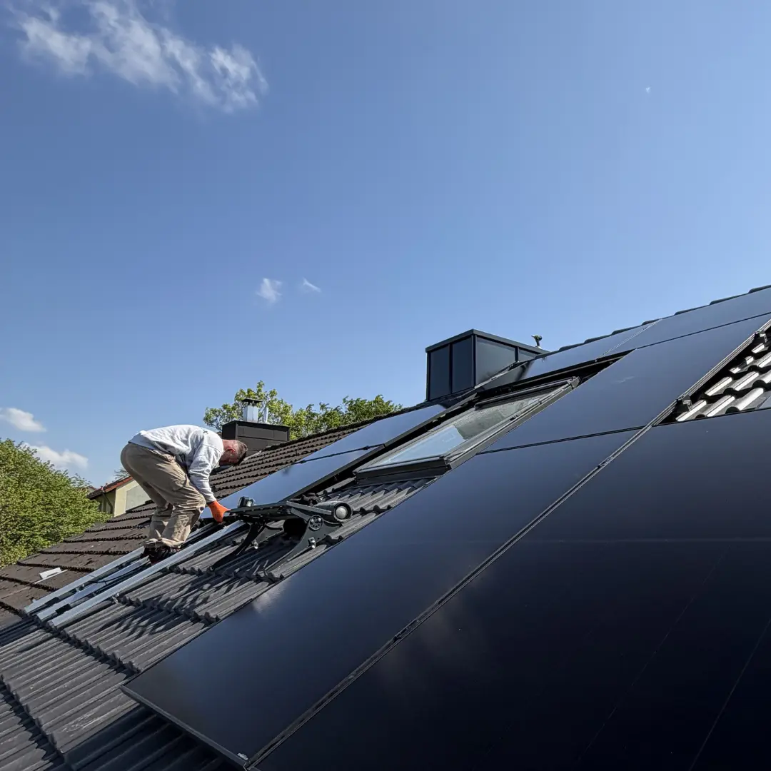 Der Kunde hat sein Dach erneuert und sich gleichzeitig für eine Photovoltaikanlage entschieden. Gemeinsam mit dem Dachdeckermeister haben wir die Arbeiten eng abgestimmt, sodass beide Gewerke optimal ineinandergreifen konnten.