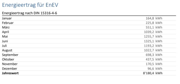 Mit 14 Solarmodulen und einer Nordwest Ausrichtung erreicht die zweite Anlage eine Gesamtleistung von 6,3 kWp mit einem spezifischen Ertrag von 954,13 kWh/kWp.